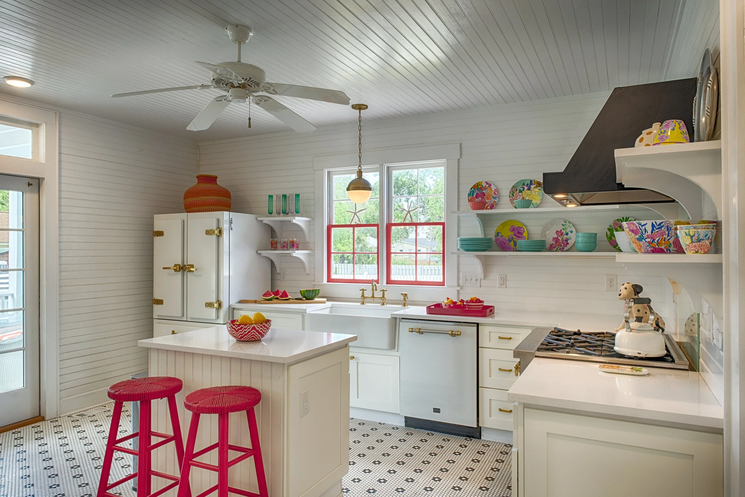 This cheerful kitchen at Bliss Cottage, part of The Cottage Collection Tybee Island, showcases designer Jane Coslick’s signature style with vintage charm and a playful pop of color. Sharing visuals like this helps future clients see more than the result, they get a feel for the thoughtful design process behind it all.