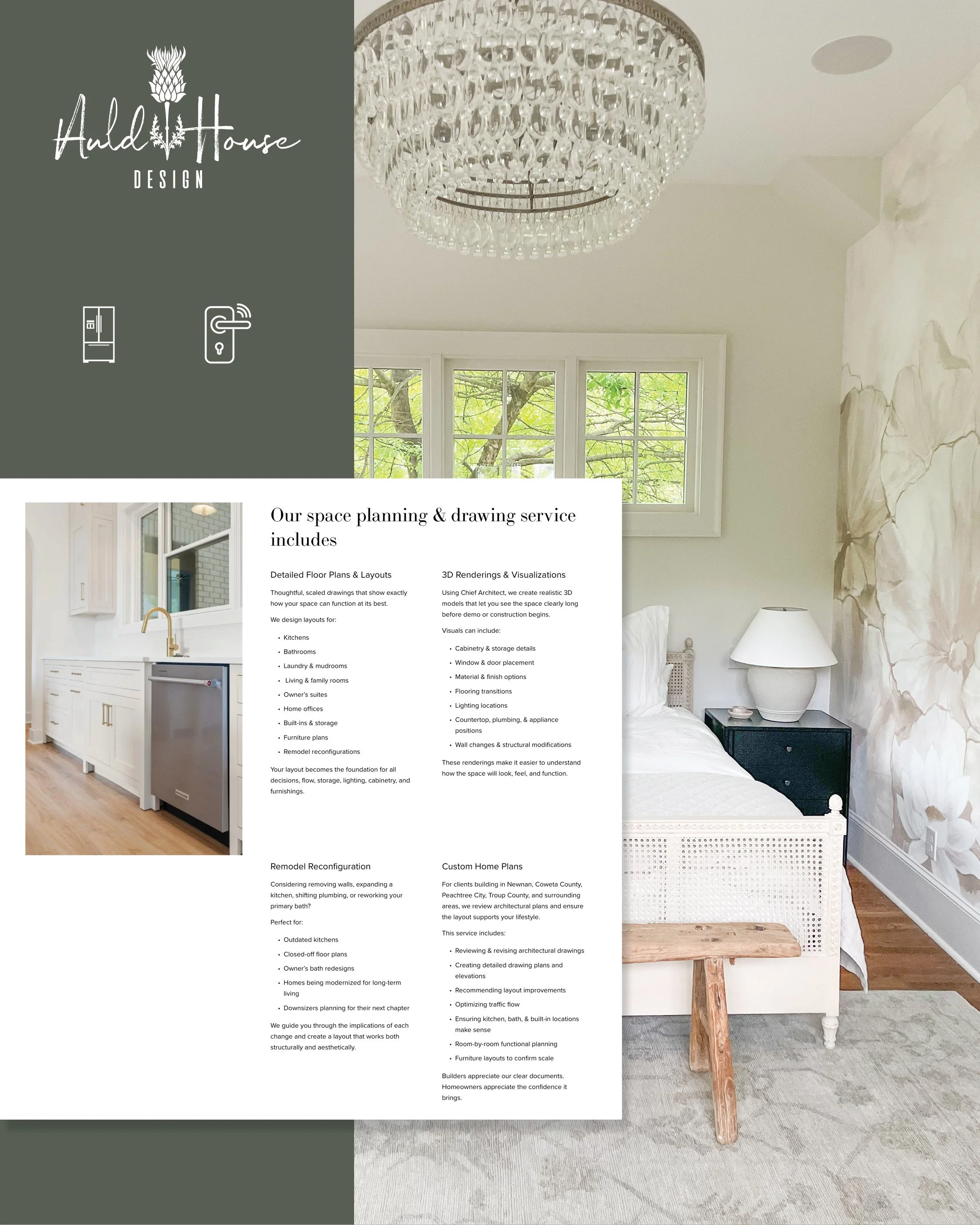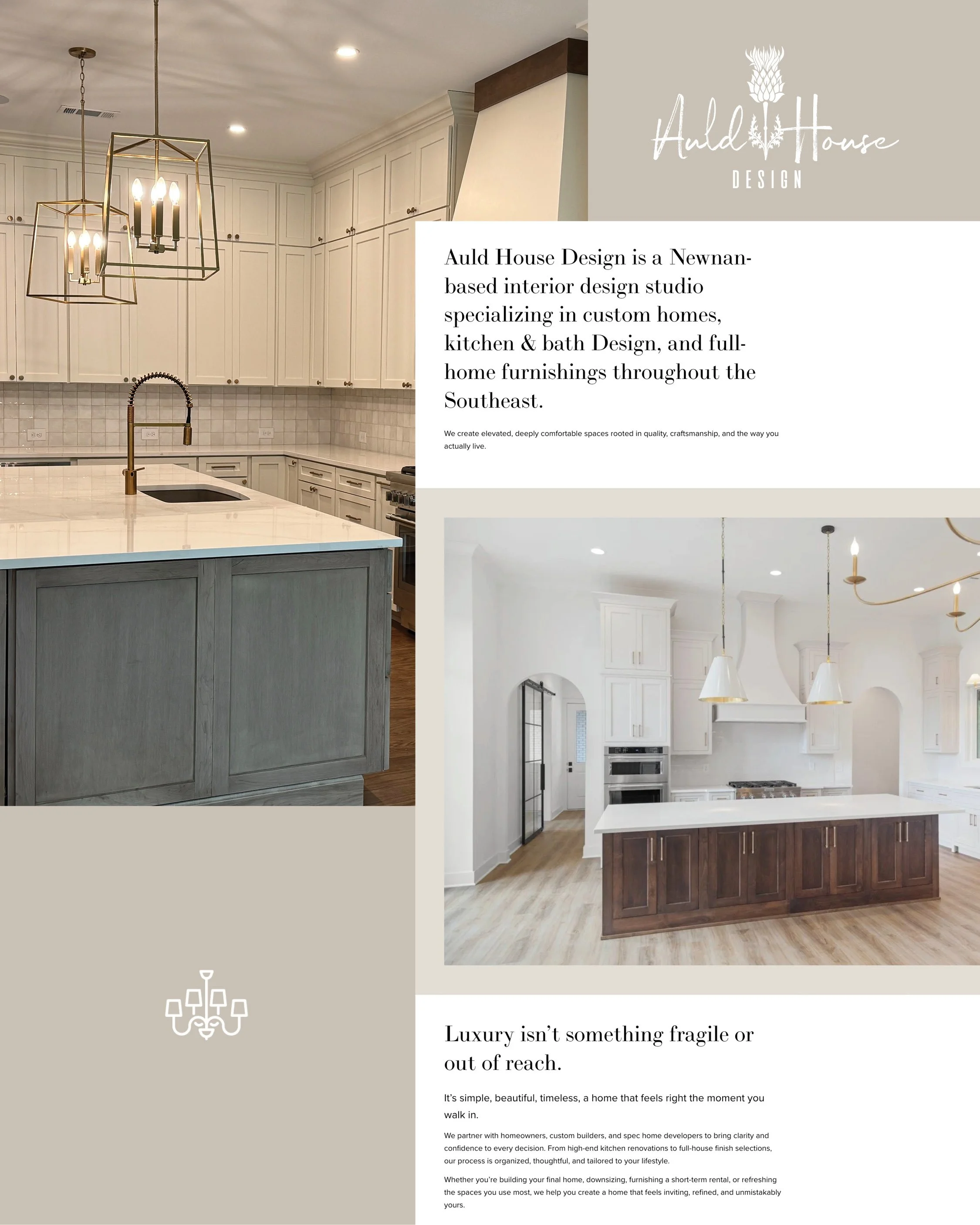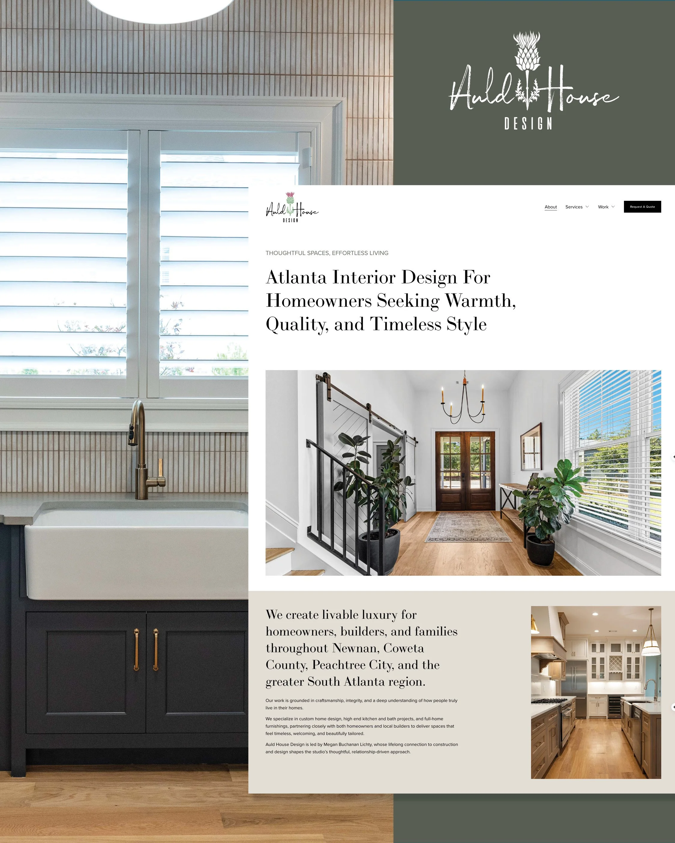 When Megan from Auld House Design reached out, she wasn’t looking for a complete rebrand. The foundation of her South Atlanta interior design studio was already strong, rooted in Southern hospitality, quiet confidence, and beautifully functional spaces that feel tailored, yet entirely livable. What she needed was a website that matched the quality and care of the work she and her team deliver every day.
